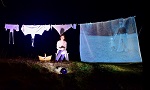 Telder presenteerde zich wederom tijdens de fascinerende wandeltocht langs lichtbeelden in de Terschellingse natuur, zowel tijdens de Lytse Fjoertoer als de Fjoertoer. De hangende was op een waslijn, roept herinneringen op; een combinatie van dans en film, en mensen en herinneringen die verschijnen en verdwijnen.